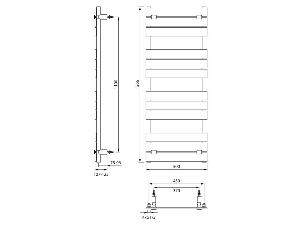 Stylový radiátor z hladkých zaoblených ocelových profilů s bočním připojením.