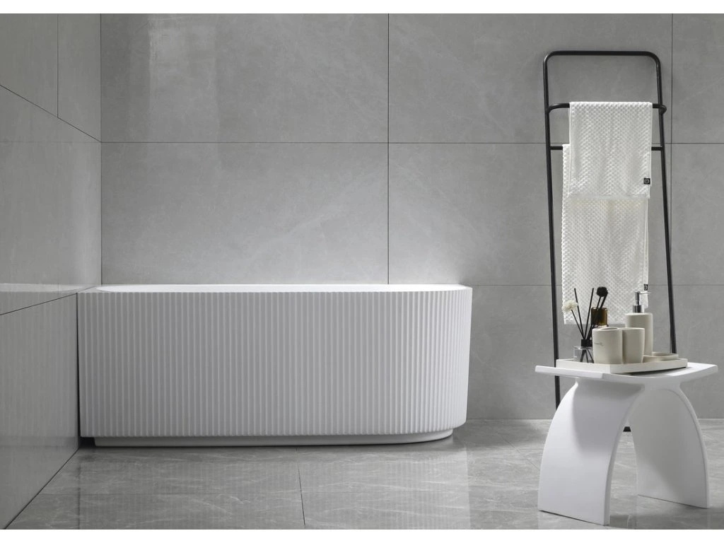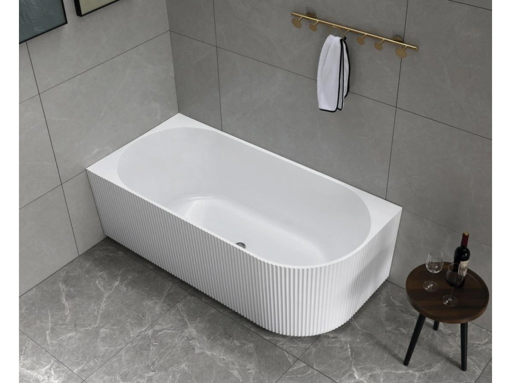 Samostatně stojící vana TIBERA se neobezdívá ani neobkládá. Svým designem je určena k instalaci do rohu, čímž se stává zajímavou variantou náhrady za klasickou rohovou vanu. Pohledová je i zadní strana, takže elegantně bude působit i v prostoru. Za pozornost stojí řešení přepadu ve tvaru obdélníkové štěrbiny s nerezovou krytkou.
