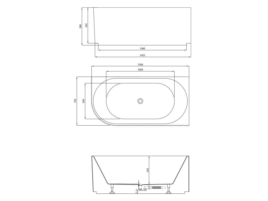 Aqualine TIBERA STRIP R rohová stojící vana, 150x75cm, bílá E1037G