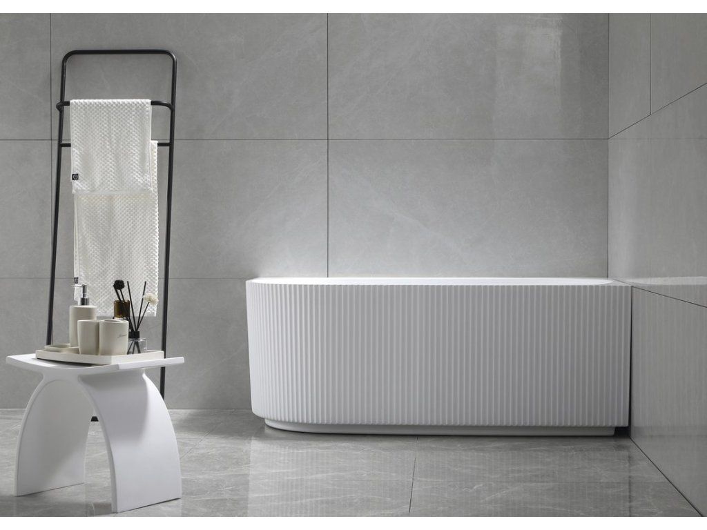 Samostatně stojící vana TIBERA se neobezdívá ani neobkládá. Svým designem je určena k instalaci do rohu, čímž se stává zajímavou variantou náhrady za klasickou rohovou vanu. Pohledová je i zadní strana, takže elegantně bude působit i v prostoru. Za pozornost stojí řešení přepadu ve tvaru obdélníkové štěrbiny s nerezovou krytkou.