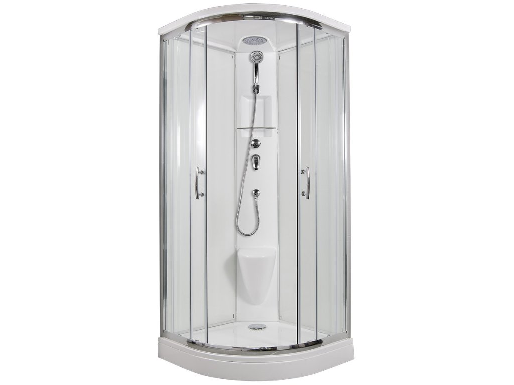 Sprchový box ARTTEC BRILIANT MODEL 3 grape, vlastní výroby, s posuvnými dveřmi čtvrtkruhový se vyznačuje vysokou kvalitou a jednoduchým designem. Nabízí vše, co potřebujete k pohodlnému každodennímu sprchování: baterii s ruční sprchou a držákem, poličku, vestavěné sedátko, stropní sprchu a vaničku z litého mramoru.