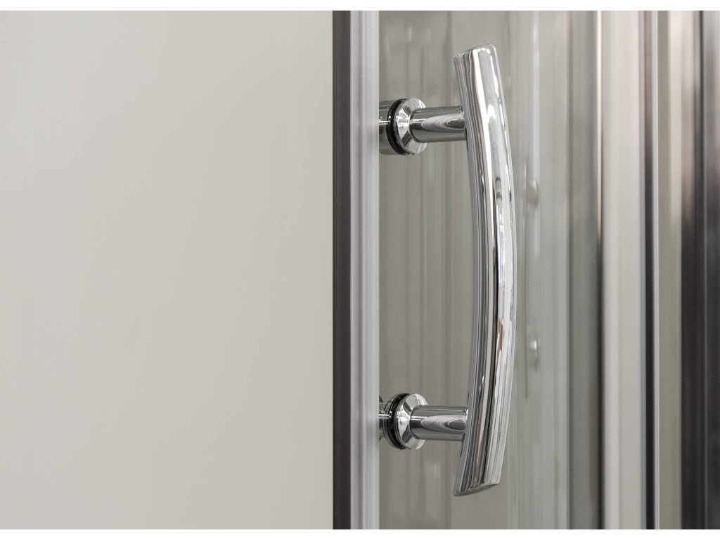 Super bílá neprůhledná zadní skla a přední výplň z šedého 5 mm bezpečnostního skla v leštěném hliníkovém profilu zajistí Vaší koupelně elegantní vzhled.