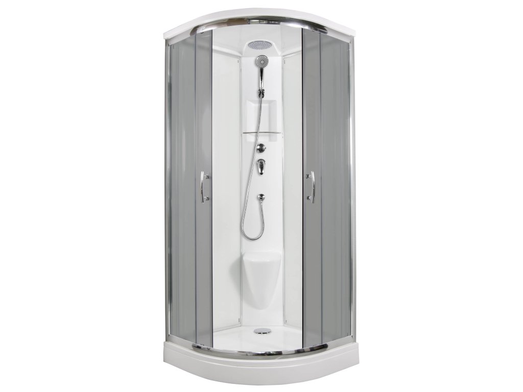 Sprchový box ARTTEC BRILIANT MODEL 3 šedý, vlastní výroby, s posuvnými dveřmi čtvrtkruhový se vyznačuje vysokou kvalitou a jednoduchým designem. Nabízí vše, co potřebujete k pohodlnému každodennímu sprchování: baterii s ruční sprchou a držákem, poličku, vestavěné sedátko, stropní sprchu a vaničku z litého mramoru.