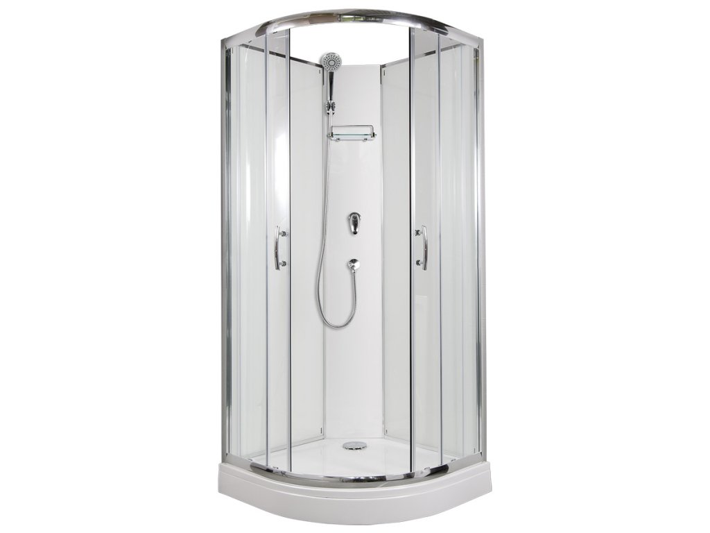 Sprchový box ARTTEC BRILIANT MODEL 1 grape, vlastní výroby, s posuvnými dveřmi čtvrtkruhový se vyznačuje vysokou kvalitou a jednoduchým designem. Nabízí vše, co potřebujete k pohodlnému každodennímu sprchování: baterii s ruční sprchou a držákem, poličku a vaničku z litého mramoru.