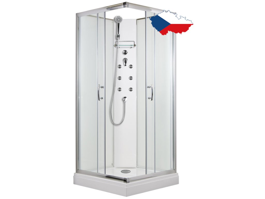 Masážní sprchový box ARTTEC SMARAGD MODEL 4 grape, vlastní výroby, s posuvnými dveřmi čtvercový se vyznačuje vysokou kvalitou a jednoduchým designem. Nabízí vše, co potřebujete k pohodlnému každodennímu sprchování: baterii s ruční sprchou a držákem, poličku a vaničku z litého mramoru. Pro větší relaxaci přináší i 6ks masážních trysek.