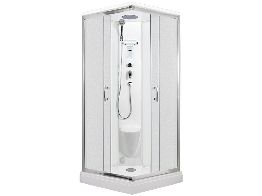 Sprchový box s rozměry 87x87x220 cm se snadno instaluje i do velmi malých prostorů koupelen v panelových domech. Možnost připojení na společnou vzduchotechniku v domě.