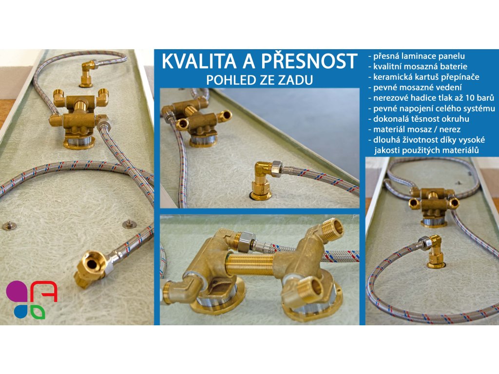 - panel vyrábíme ze stejného povrchového materiálu jako vaničku a proto nevznikají ani po delším používání barevné rozdíly