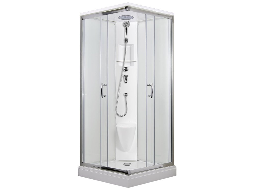 Sprchový box ARTTEC SMARAGD MODEL 3 grape, vlastní výroby, s posuvnými dveřmi čtvercový se vyznačuje vysokou kvalitou a jednoduchým designem. Nabízí vše, co potřebujete k pohodlnému každodennímu sprchování: baterii s ruční sprchou a držákem, poličku, vestavěné sedátko, stropní sprchu a vaničku z litého mramoru.