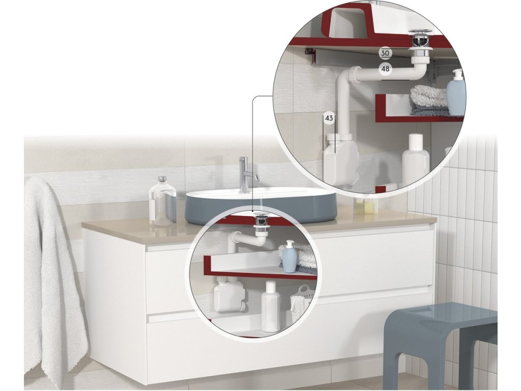 Jedná se o systém, kde trubka těsně pod umyvadlem odvede vodu ke zdi a teprve tam ji odvádí svisle dolů. Toto řešení je vhodné například do koupelnového nábytku, kdy sifon nebrání využití police/zásuvky, pro umyvadla s policí nebo k umyvadlům pro tělesně handicapované.
