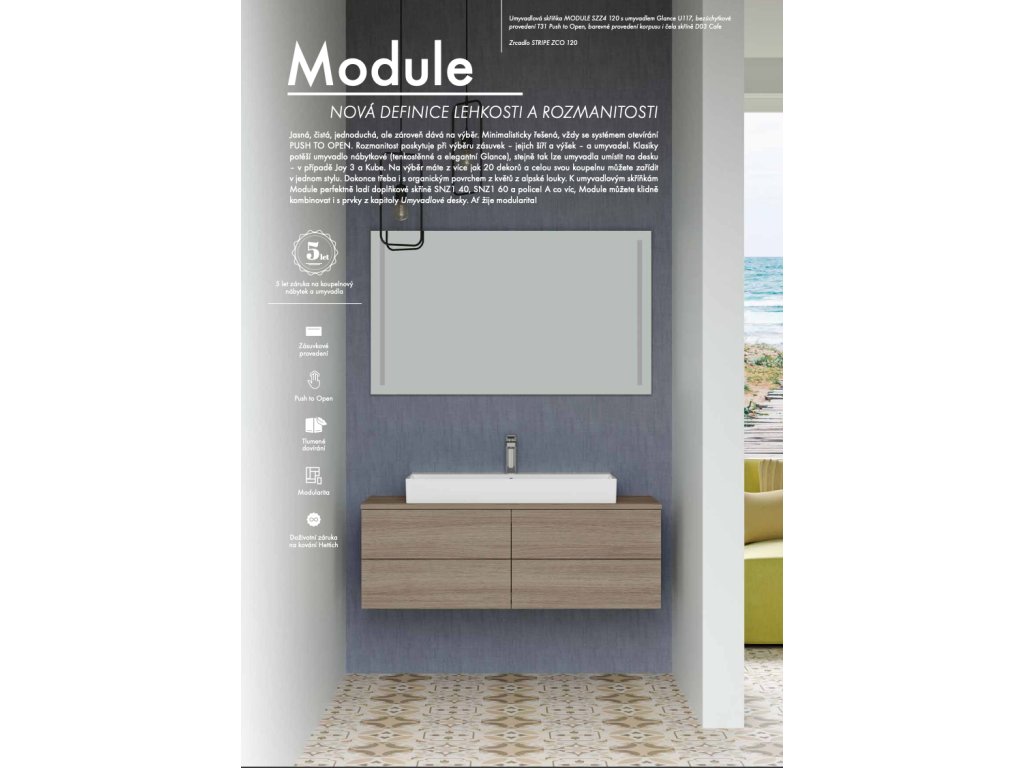 Hledáte ve svém životě jednoduchost? Pak vám ji můžeme nabídnout v podání umyvadlové skříňky MODULE. Začněte od koupelny a uvidíte, že příjemná strohost se propíše do každého dne. Kolekce koupelnového nábytku MODULE vyniká elegantními liniemi a minimalistickým vzhledem. Ovšem šíře možností, kterou vám kolekce nabízí, vás může příjemně zaskočit.