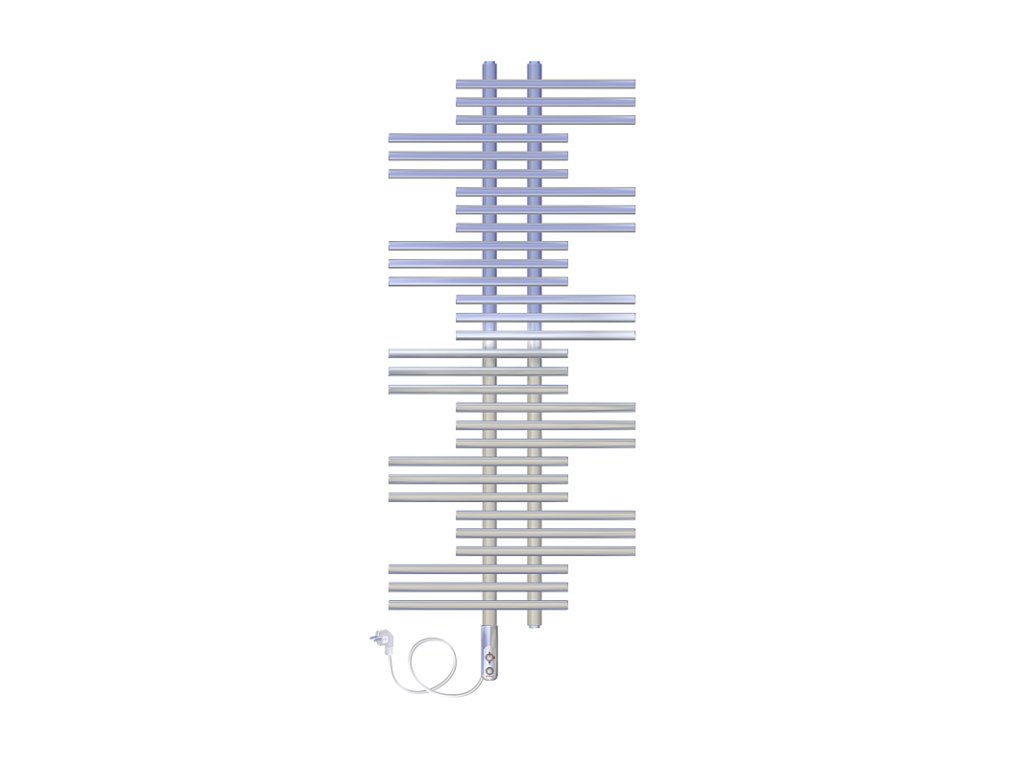 Elektrický radiátor BITI vyniká svým výjimečným a elegantním vzhledem. Vzhledová jedinečnost, ojedinělý design a praktičnost je předností tohoto radiátoru, který svou konstrukcí nabízející výhodu jednoduchého zavěšení ručníků ze strany. Elektrický radiátor BITI.ERDBM je tvořen z rovných ocelových trubek s povrchovou úpravou chrom. Skupiny ze tří vodorovných trubek jsou umisťovány na dvě svislé trubky a to střídavě na levou a pravou stranu. Radiátor je plněn nemrznoucí směsí do -7 °C. V radiátoru je elektrické topné těleso s integrovaným termostatem a regulací teploty topného tělesa. Regulátor pracuje ve čtyřech provozních režimech pro ohřev topného média ( 2 hodinový program sušení ). Rozměry: délka 550 mm, výška 1250 mm, hloubka 50 mm, provozní napětí 230V, el. příkon 300W, el. třída I, krytí IP44.
