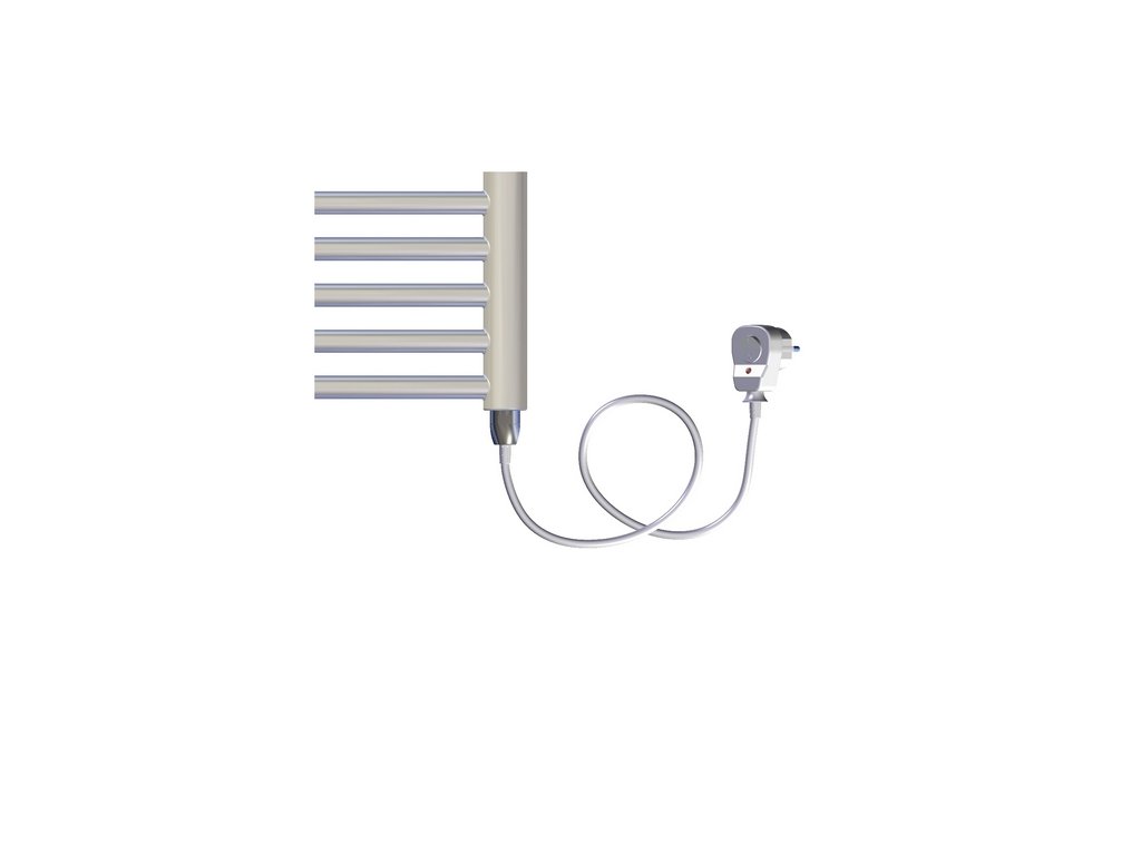 DC.ES bez regulace, do zásuvkyElektrický koupelnový radiátor – sušák DC.ES je určený k zapojení do zásuvky. Součástí radiátoru je elektrické topné těleso EL.05 S vybavené omezovačem teploty, který zamezuje přehřátí radiátoru. V provedení DC.ES je koupelnový radiátor do zásuvky bez možnosti regulace výkonu. Koupelnový radiátor s topnou tyčí a náplní DC.ES je nabízen s rovným nebo krouceným přívodním kabelem, který je zakončen síťovou vidlicí Unischuko 230V~ a síťovým spínačem.