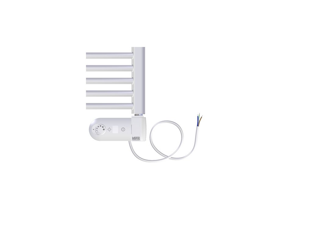BKO.ERK s horizontálním regulátoremElektrický koupelnový radiátor – sušák BKO.ERK s elektronickým regulátorem prostorové teploty s programem sušení se připojuje k elektrické síti přes instalační krabici pevného elektrického rozvodu. Elektronický regulátor s 2 hodinovým programem sušení umožňuje regulovat prostorovou teplotu v rozsahu 5°C až 30°C. Elektrický trubkový radiátor BKO.ERK je v nabídce pouze s rovným kabelem, na přání lze kabel na konci opatřit síťovou vidlicí. |
