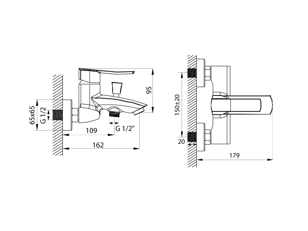 Vanová nástěnná baterie Ferro Veneto 75020/1.0 bez příslušenství, 150mm.