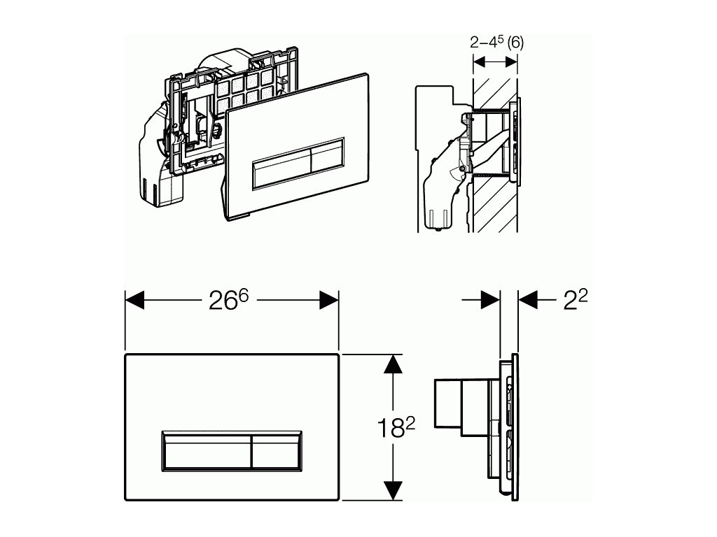 k ovládání splachování u splachovacích nádržek pod omítku Geberit Sigma 12 cm s připojením pro odsávání zápachu cirkulace vzduchu