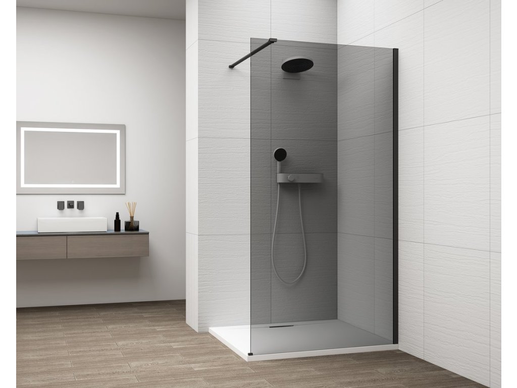 Polysan ESCA BLACK MATT jednodílná sprchová zástěna k instalaci ke stěně, kouřové sklo, 900 mm ES1290-02