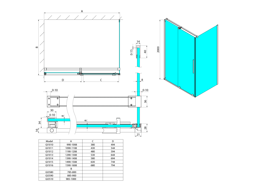 - Šířka sprchových dveří do prostoru a částečně i do niky je nastavitelná zkrácením spodního pojezdového profilu
