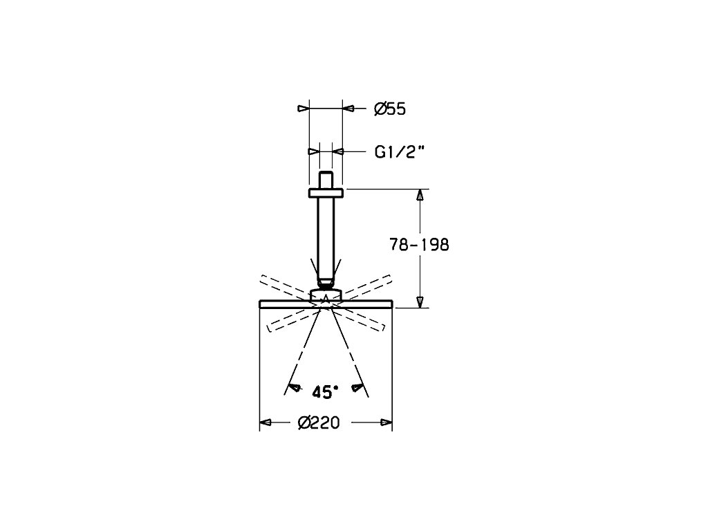 • se stropní spojovací trubkou, zkrátitelnou 78–198 mm