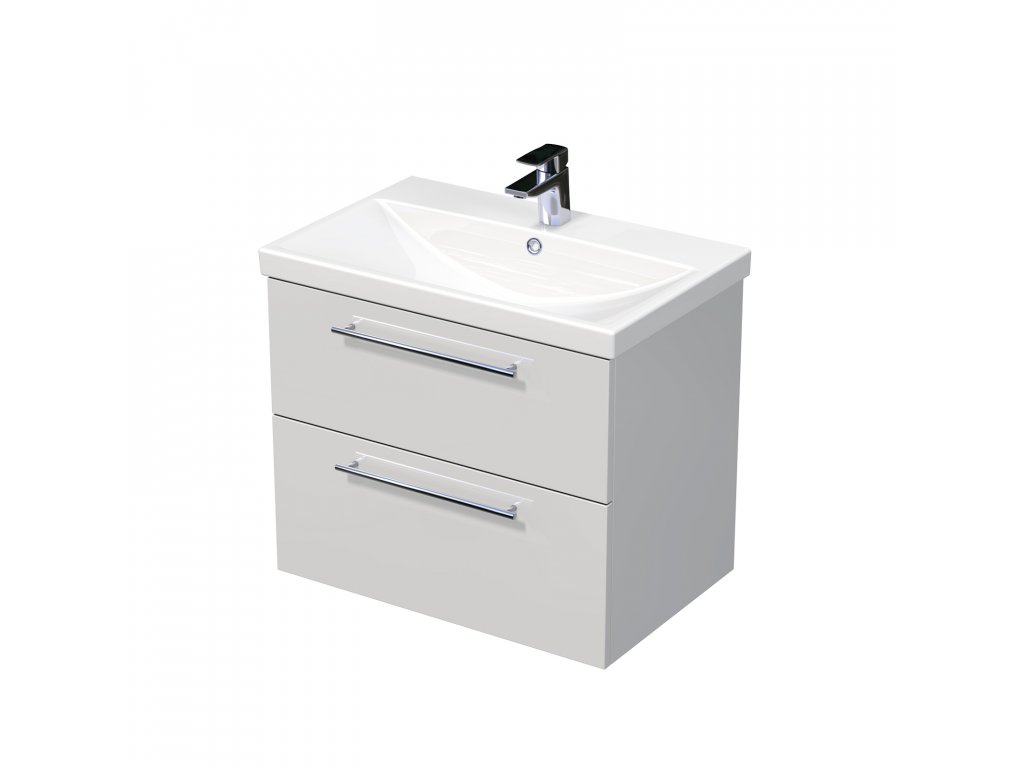 Závěsná koupelnová skříňka BOX ELITE 70 2Z s keramickým umyvadlem CeraStyle ARTE širokým 70 cm má 2 zásuvky vybavenou tlumeným dovíráním (soft-closing). Úchytky jsou celokovové s lesklou povrchovou úpravou (chrom), případně může být skříňka v provedení bez úchytek (InnoTech Atira - Hettich Push to open).