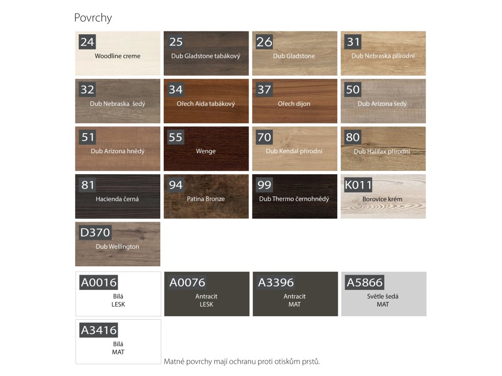| Dekor: | Beton, Borovice, Dub, Ořech, Wenge |