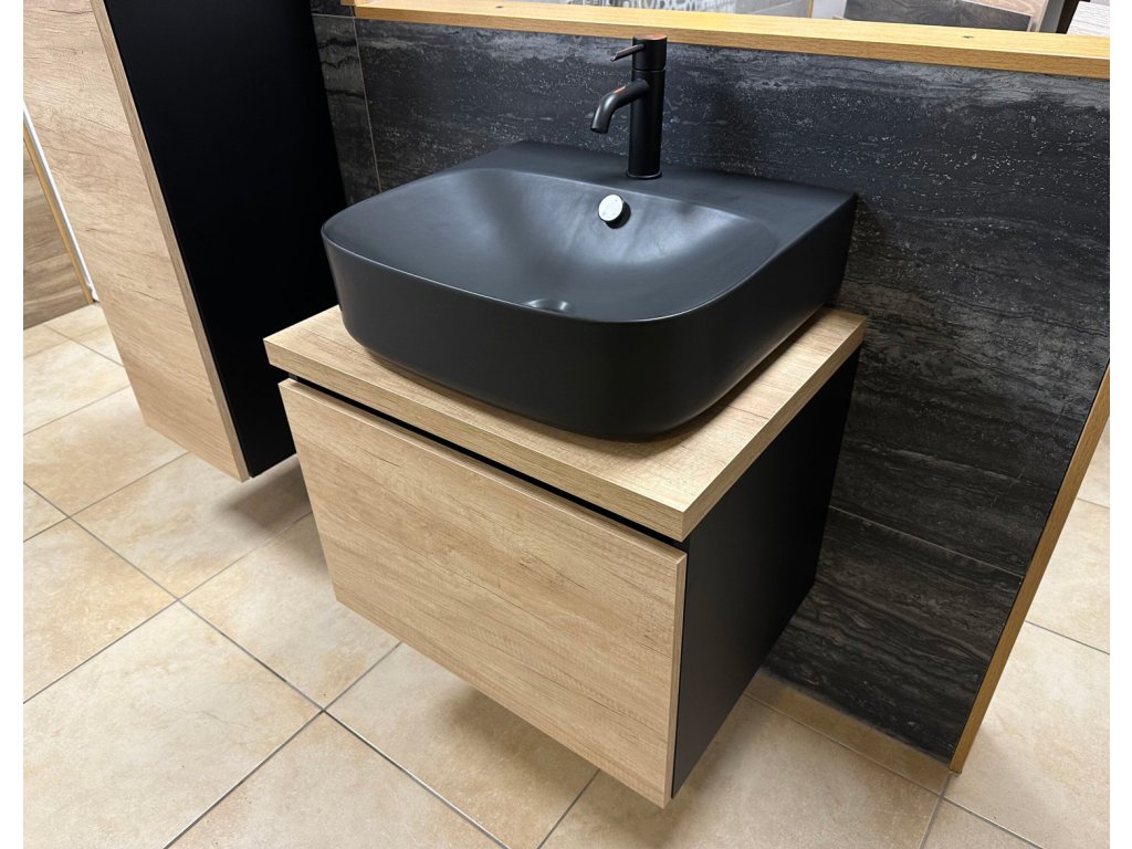 Umyvadlové skříňky pro umyvadla na desku včetně vnitřní skryté zásuvky, vybaveno moderními zásuvkami StrongMax s plynulým tlumením, vysoká doplňková skříňka v pravém nebo levém provedení, otevírání s plynulým tlumením, vyrobeno z materiálů MDF a LTD.