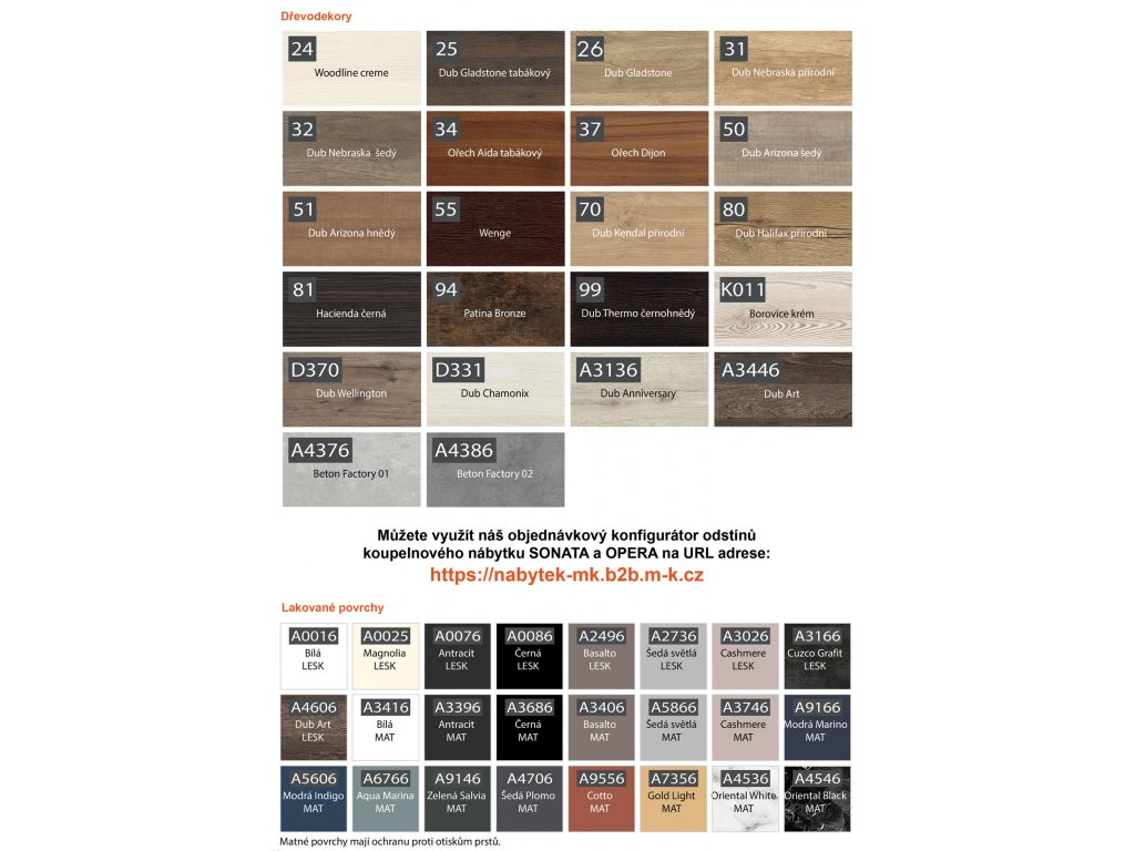 Pro objednávky jiných odstínů nebo jejich kombinaci, použijte náš objednávkový konfigurátor odstínů koupelnového nábytku na URL adrese: