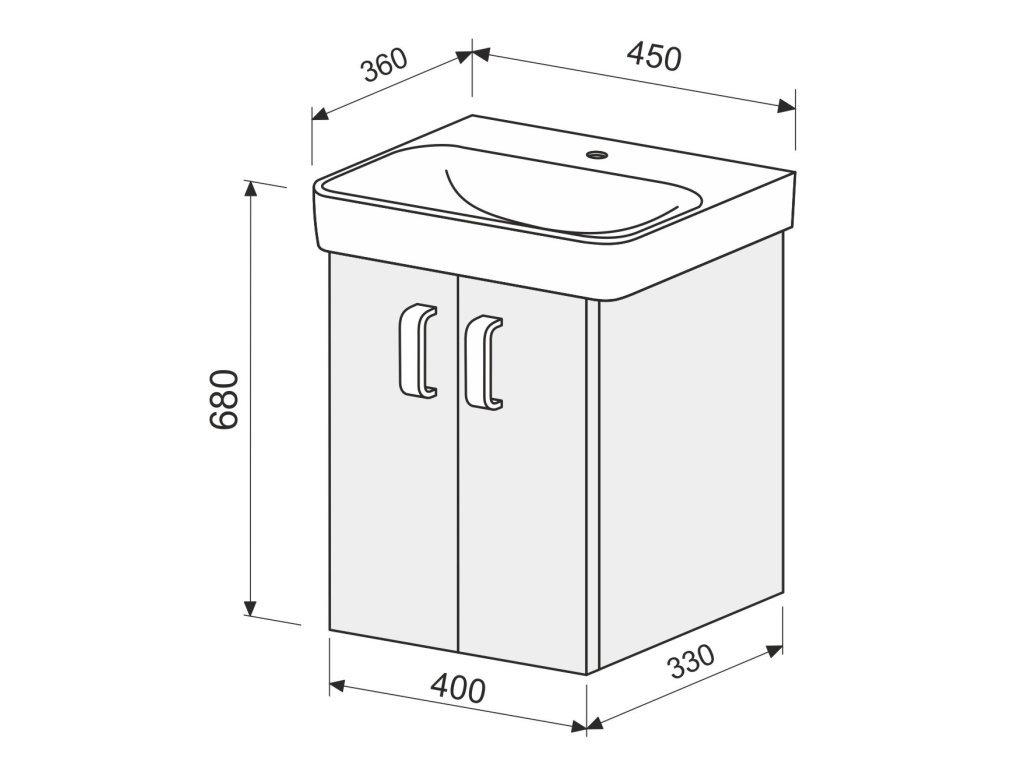 Intedoor Skříňka s umyvadlem Smyle Square 45 cm - závěsná, 2× dvířka, dub Wellington SONATA 45 2DV D370 IN-200-045 2DV D370 dub Wellington