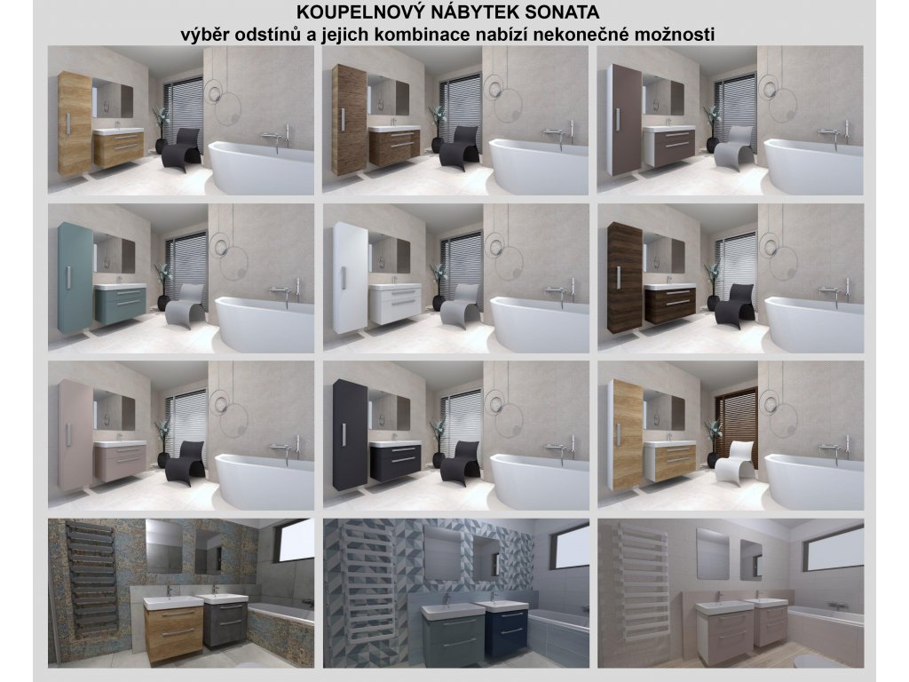 Koupelnový nábytek SONATA je osazen keramickými umyvadly o šířkách 60, 75, 90 a 120 cm.