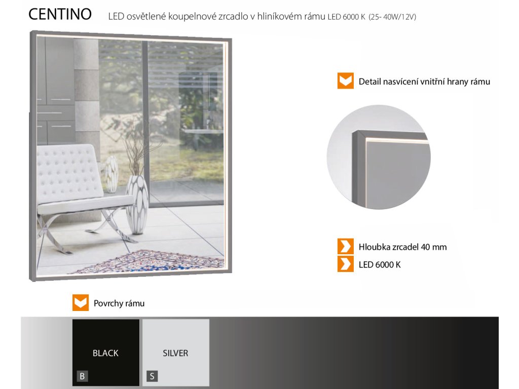 Intedoor Zrcadlo s integrovaným LED osvětlením, v hliníkovém rámu černá, 60 x 70 cm CE ZS 60B CE ZS 60B 60 x 70 cm
