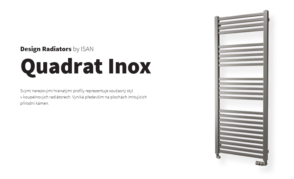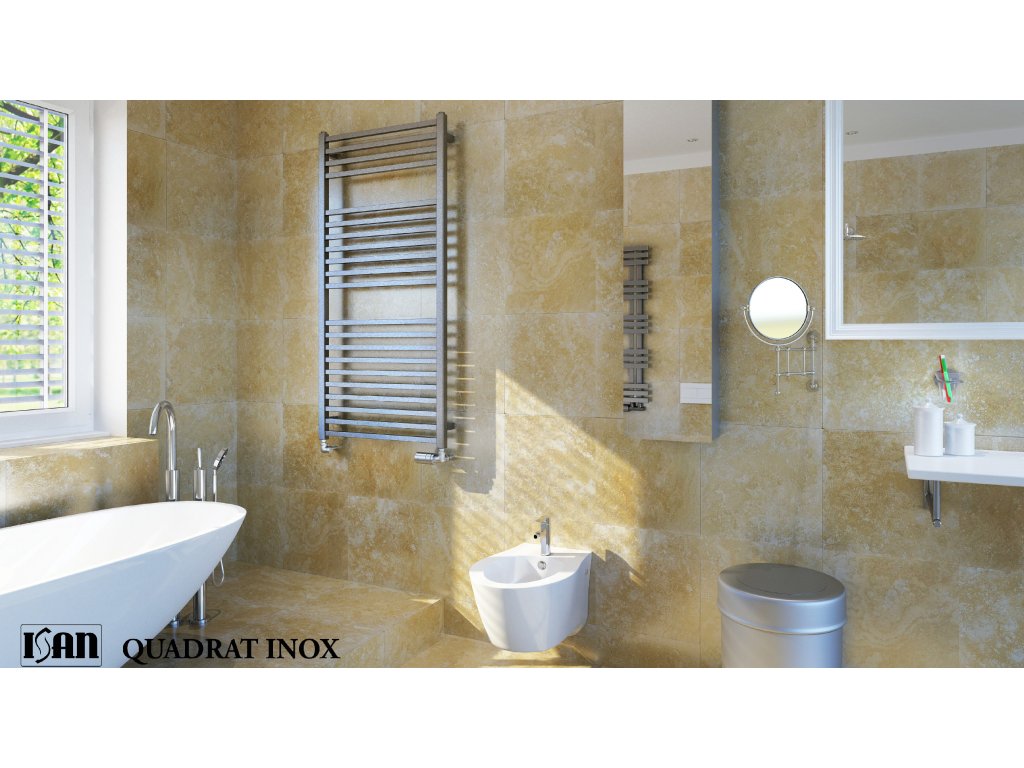 Svými nerezovými hranatými profily reprezentuje současný styl v koupelnových radiátorech. Vyniká především na plochách imitujících přírodní kámen.