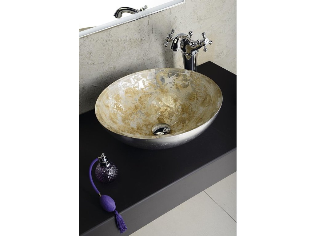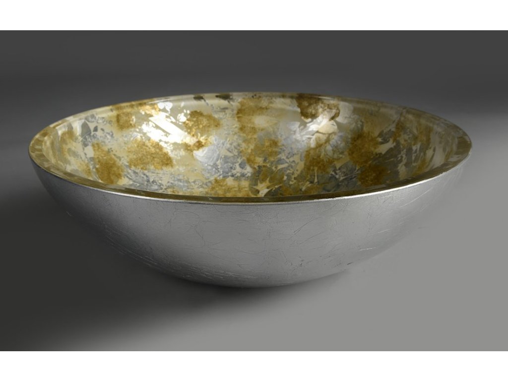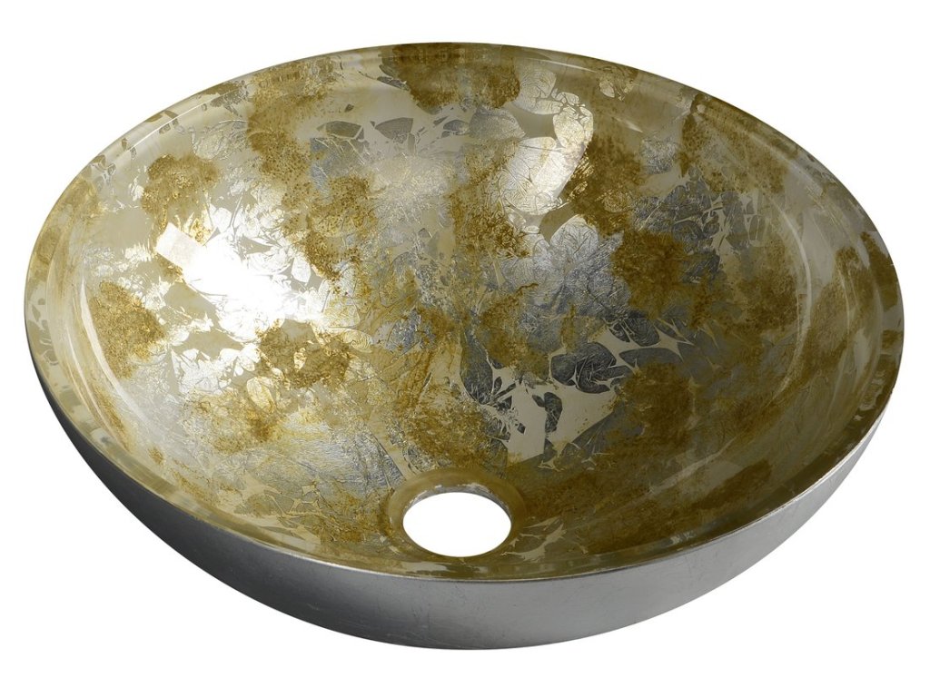 SAPHO MURANO ANIMA skleněné umyvadlo kulaté 40x14 cm, stříbrná/béžovozlatá