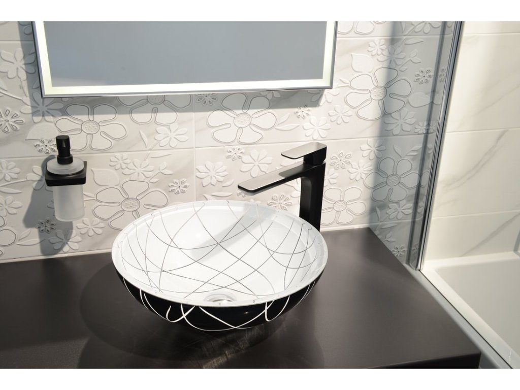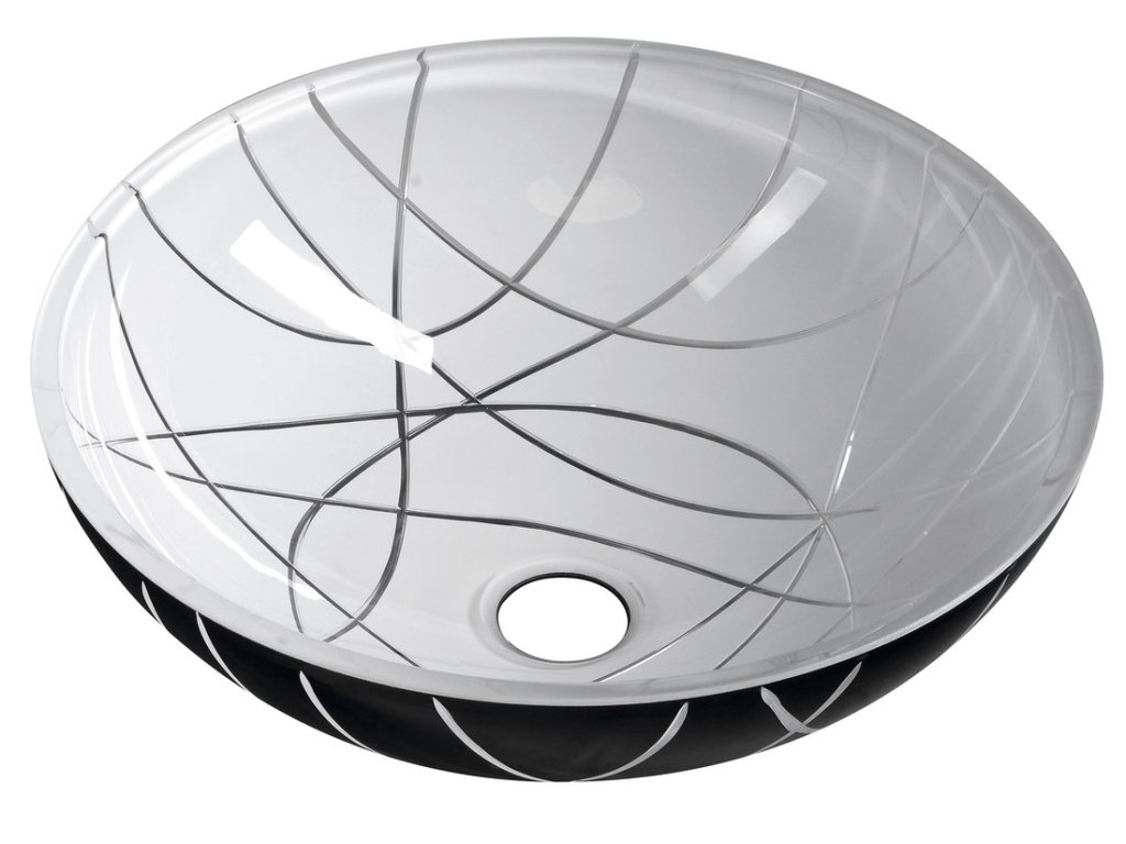 Sapho MURANO LINEA skleněné umyvadlo kulaté 40x14 cm, černá/bílá AL5318-13