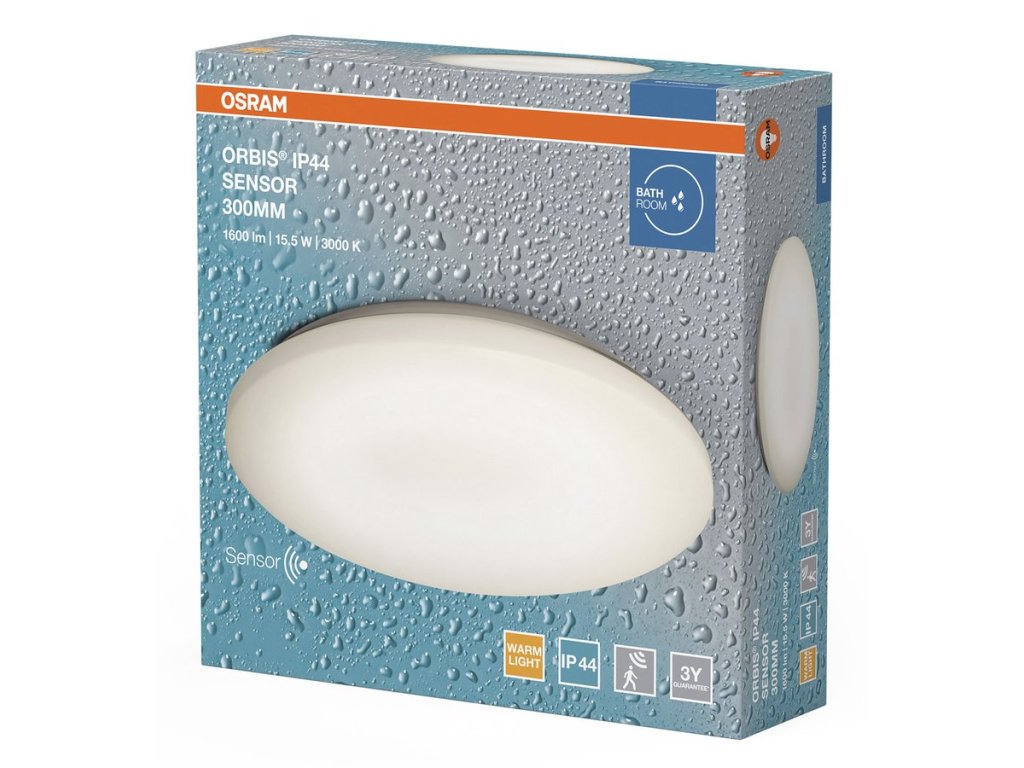 Sapho ORBIS koupelnové stropní svítidlo, ø 300mm, senzor, OSRAM, 1600lm, 15,5W, IP44 AC36060022M