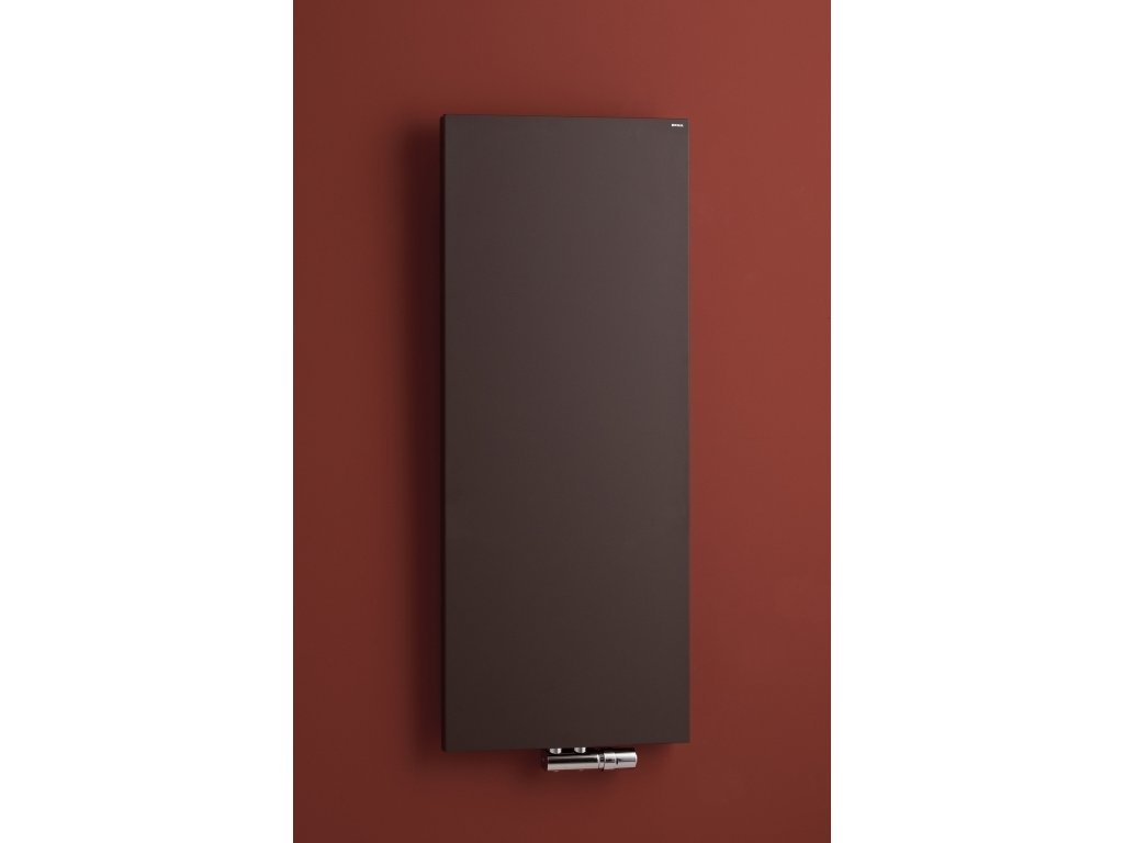 Radiátor Pegasus PG5MS od firmy PMH. Radiátor lze připojit jak klasicky po stranách tak i pomocí středového připojení 50 mm. Radiátor je možné napojit na běžný uzavřený systém nebo použít pro kombinované vytápění s elektrickou topnou tyčí. Ze zadní strany se nachází bílý radiátor, na který se pomocí magnetů upevňuje deska různé povrchové úpravy, která zasahuje i do stran a tím bílý radiátor úplně zakrývá.