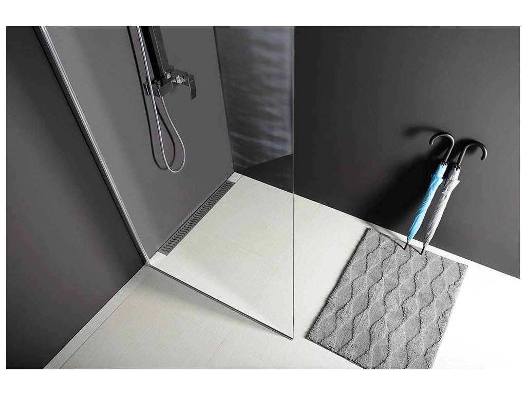Tento modul není kombinovatelný s žádnou boční stěnou, jedná se o samostatné sklo a stěnový profil s přizpůsobením 0-30 mm. Sklo se k podlaze zafixuje silikonem.