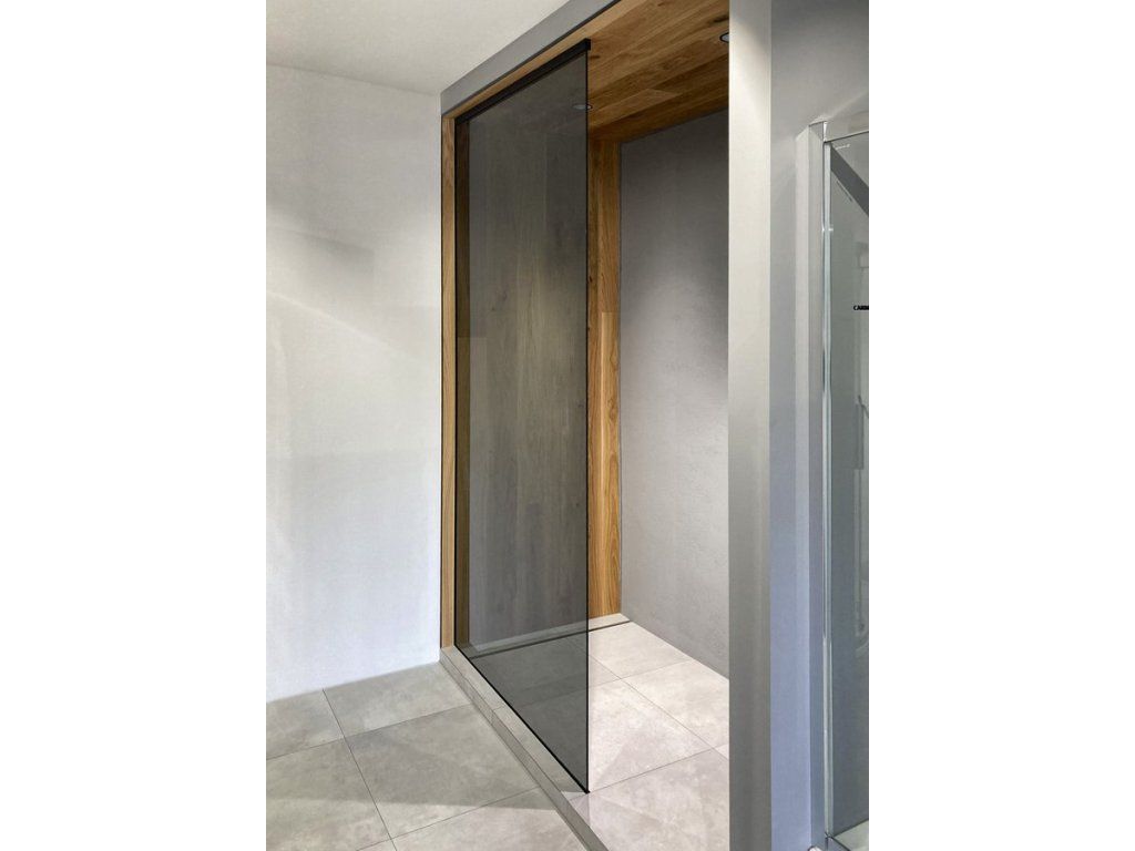 ARCHITEX jsou elegantní walk-in sprchové zástěny bez rušivých kotvících profilů. Neviditelné uchycení skleněné zástěny umožňují profily zasazené pod keramický obklad. Skleněná tabule a stropní profil se usazují až po finálním vyspárovaní keramického obkladu.