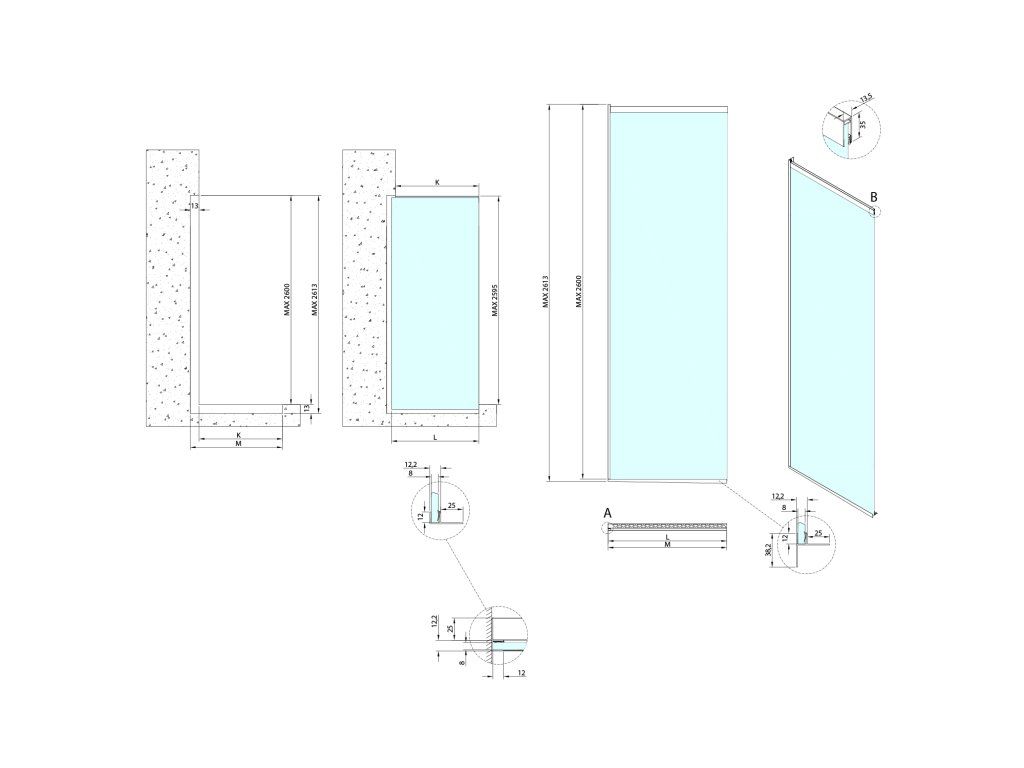 Polysan ARCHITEX sada pro uchycení skla, podlaha-stěna-strop se spádovou lištou, 1615x2600mm, levá, černá mat AX2616BL