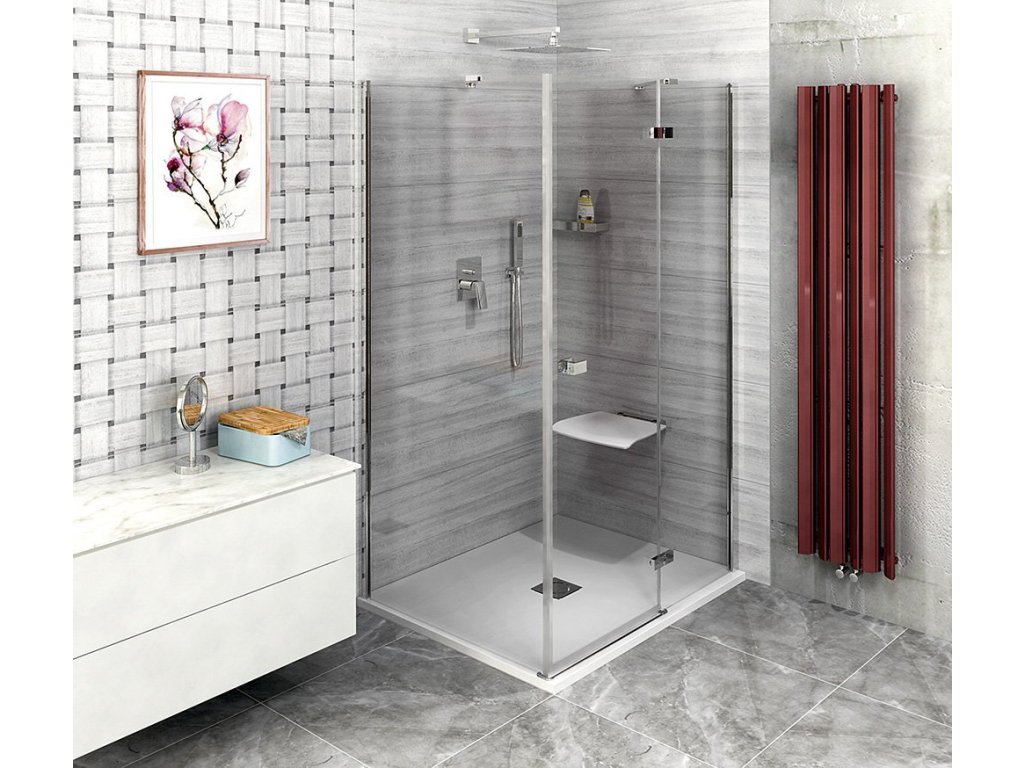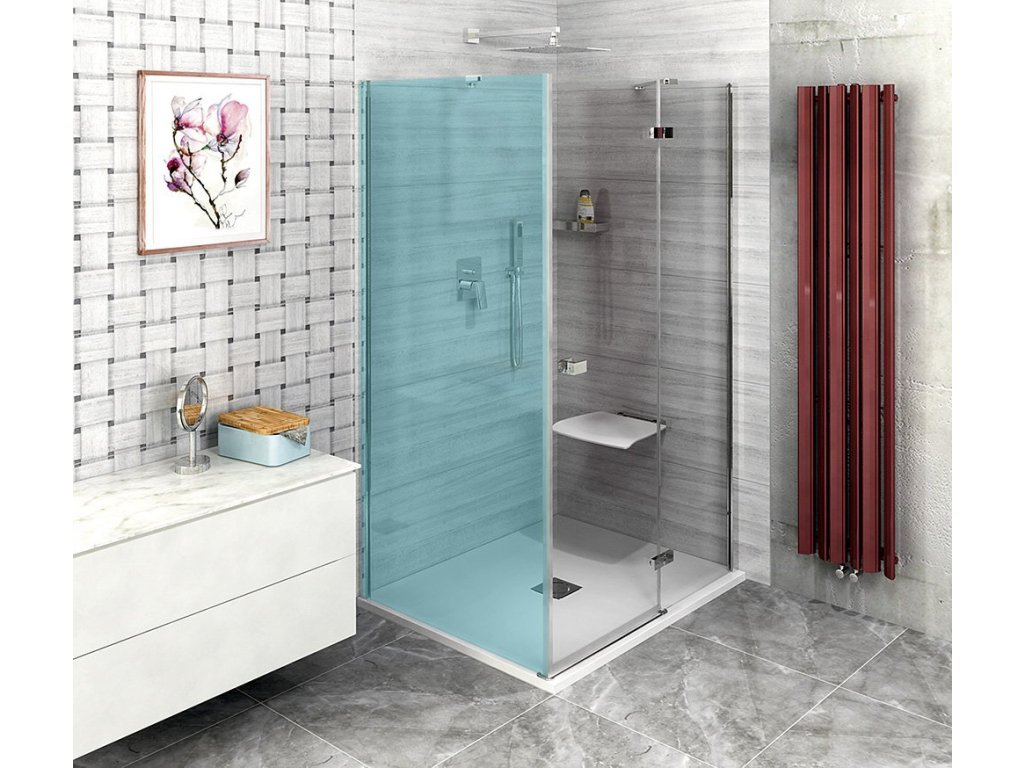 Bezrámové pantové zástěny FORTIS v moderním hranatém designu. Minimalistické pochromované panty v nekompromisním hranatém designu, zevnitř zapuštěné pro snadné čištění a se zvedací funkcí pro pohodlné otevírání. Bezpečnostní čiré sklo v tloušťce 8 mm je ošetřené povrchovou úpravou ANTIDROP pro snadné čištění. Výška 2000 mm. Hranaté pochromované madlo ve stejném minimalistickém designu jako panty.