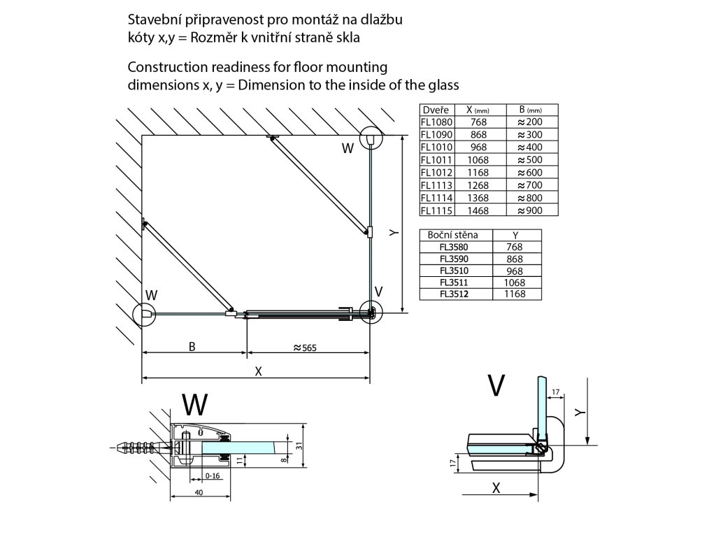 - Rohová vzpěra pro vyšší stabilitu je součástí balení, délka vzpěry se liší podle šířky skla