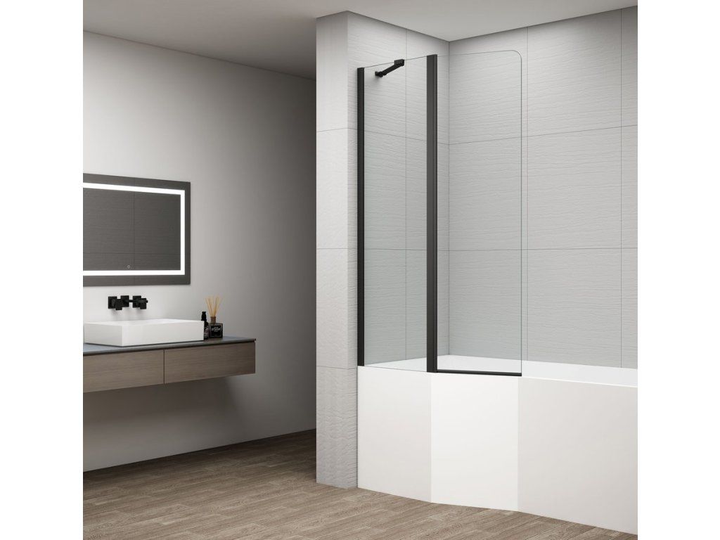 Polysan ROTA BLACK vanová zástěna otočná s pevnou stěnou 900mm, čiré sklo FB920