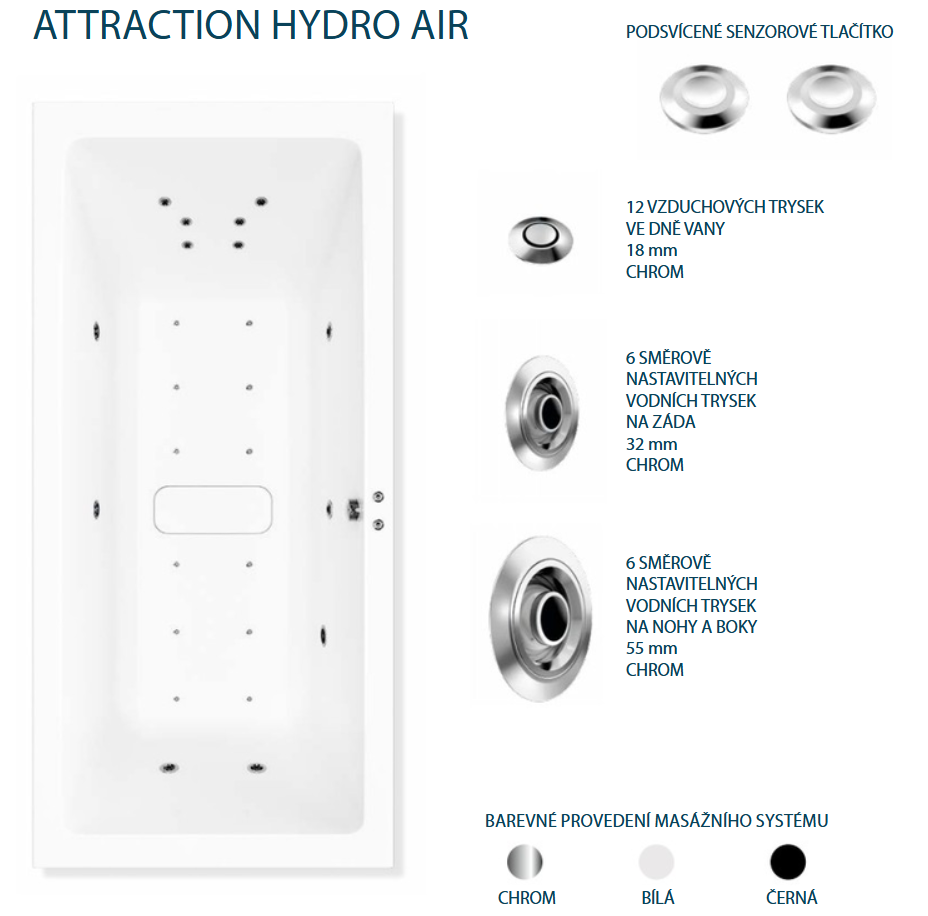 | Masážní systém | ATTRACTION HYDRO AIR |
