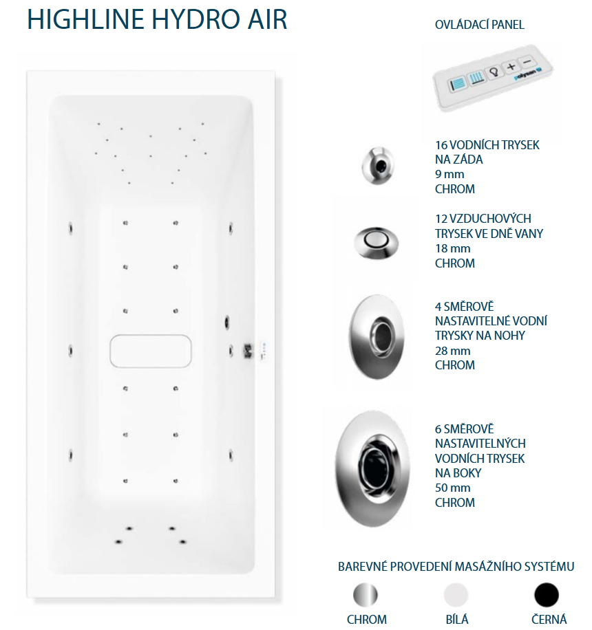 | Masážní systém | HIGHLINE HYDRO AIR |