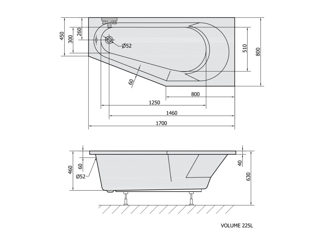 Polysan TIGRA R asymetrická vana 170x80x46cm, ivory 90611.40