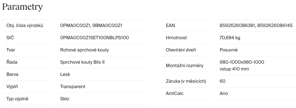 | Výška sprchových dveří: | 195 cm |