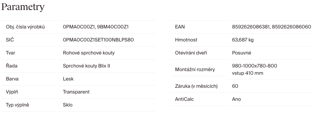 | Hloubka sprchových dveří: | 80 cm |
