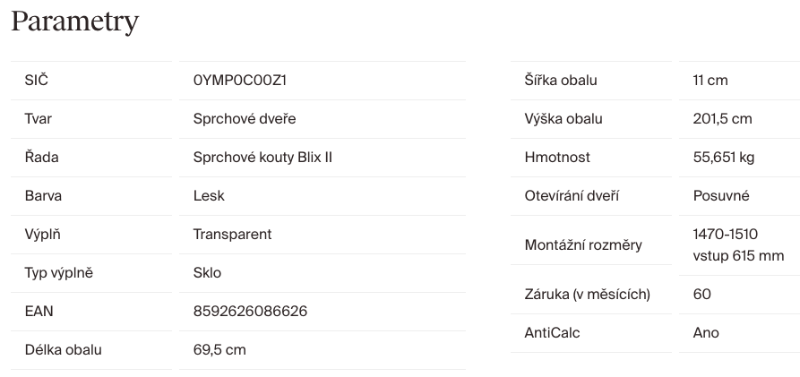 | Kategorie: | Sprchové dveře (do niky/výklenku nebo k bočním stěnám) |