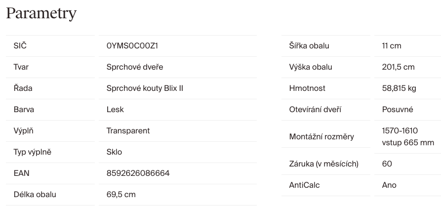 | Výška sprchových dveří: | 195 cm |