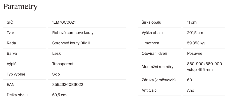 | Výška sprchových dveří: | 195 cm |