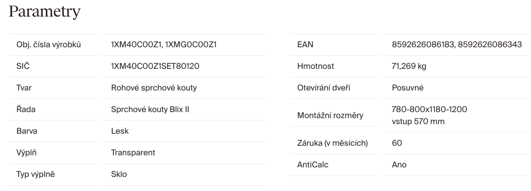 | Šířka sprchových dveří: | 80 cm |