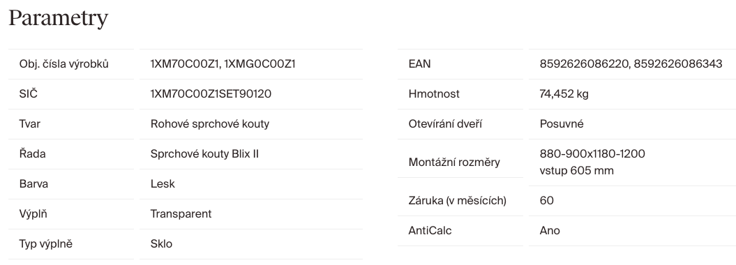 | Výška sprchových dveří: | 195 cm |